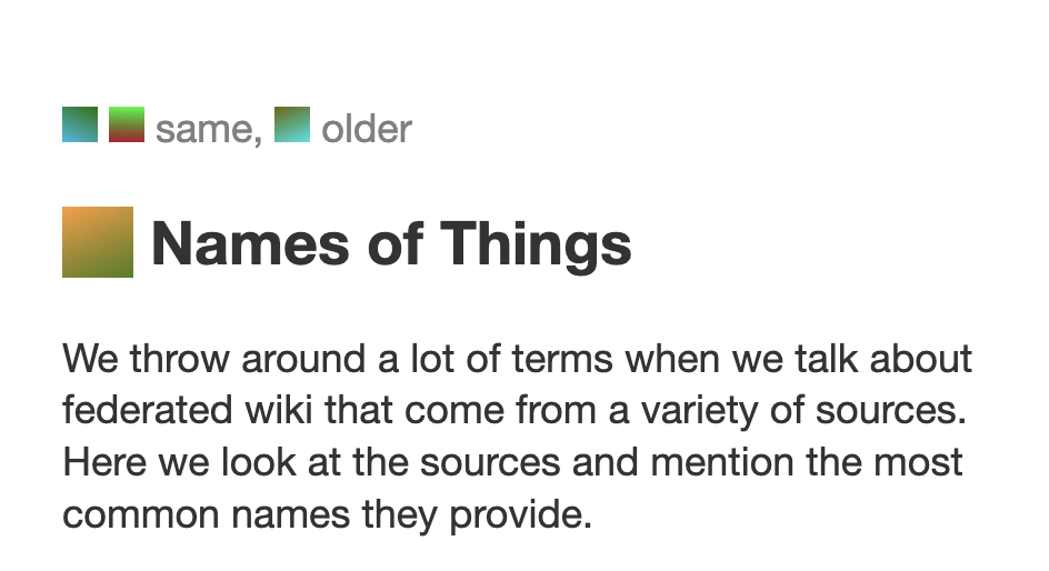 The larger colored box (next to the title Names of Things) is a Site Flag. Drag it from the other site and drop it anywhere on one of your pages.
